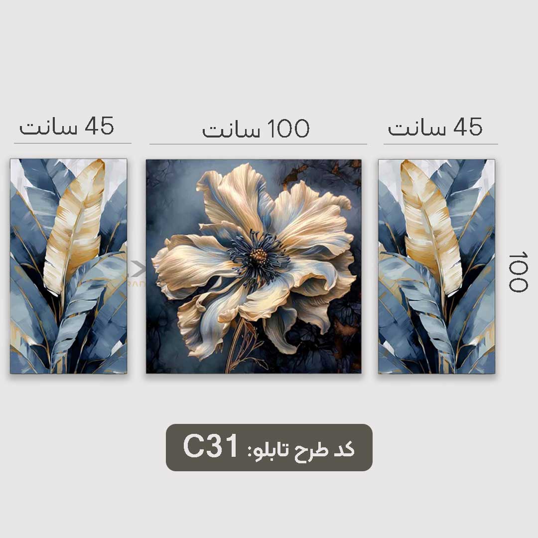 تابلو دکوراتیو سهتکه 90*190 طرح گل آبی