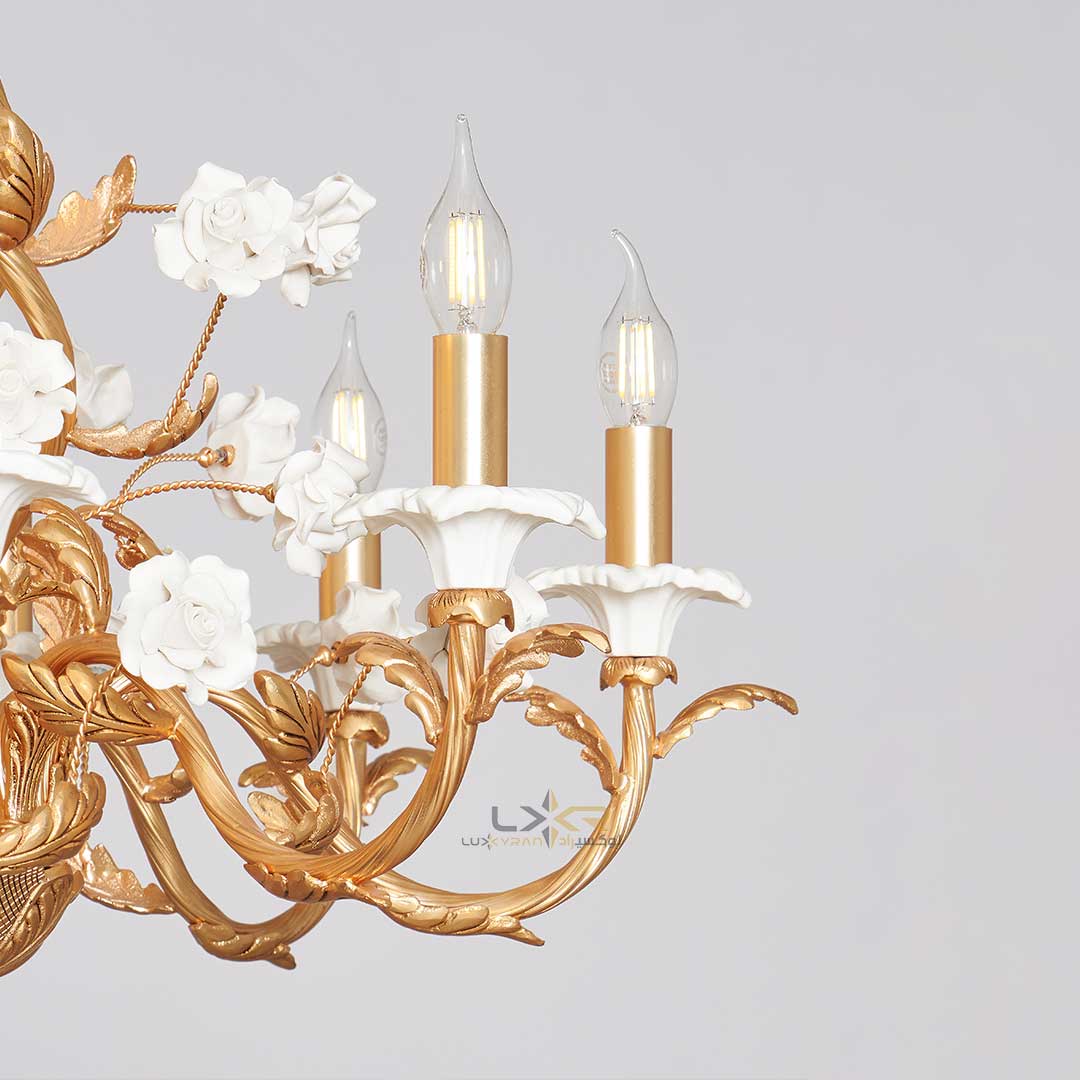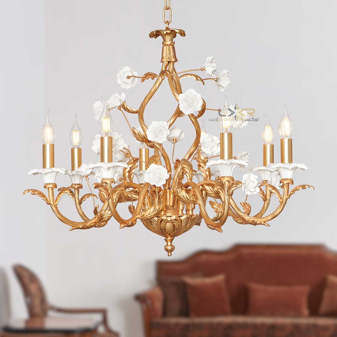 لوستر کلاسیک گلدار، ترکیبی از ظرافت طبیعت و شکوه اصالت است؛ نوری که با هر گل، حس لطافت و تجمل را در فضا میپراکند.