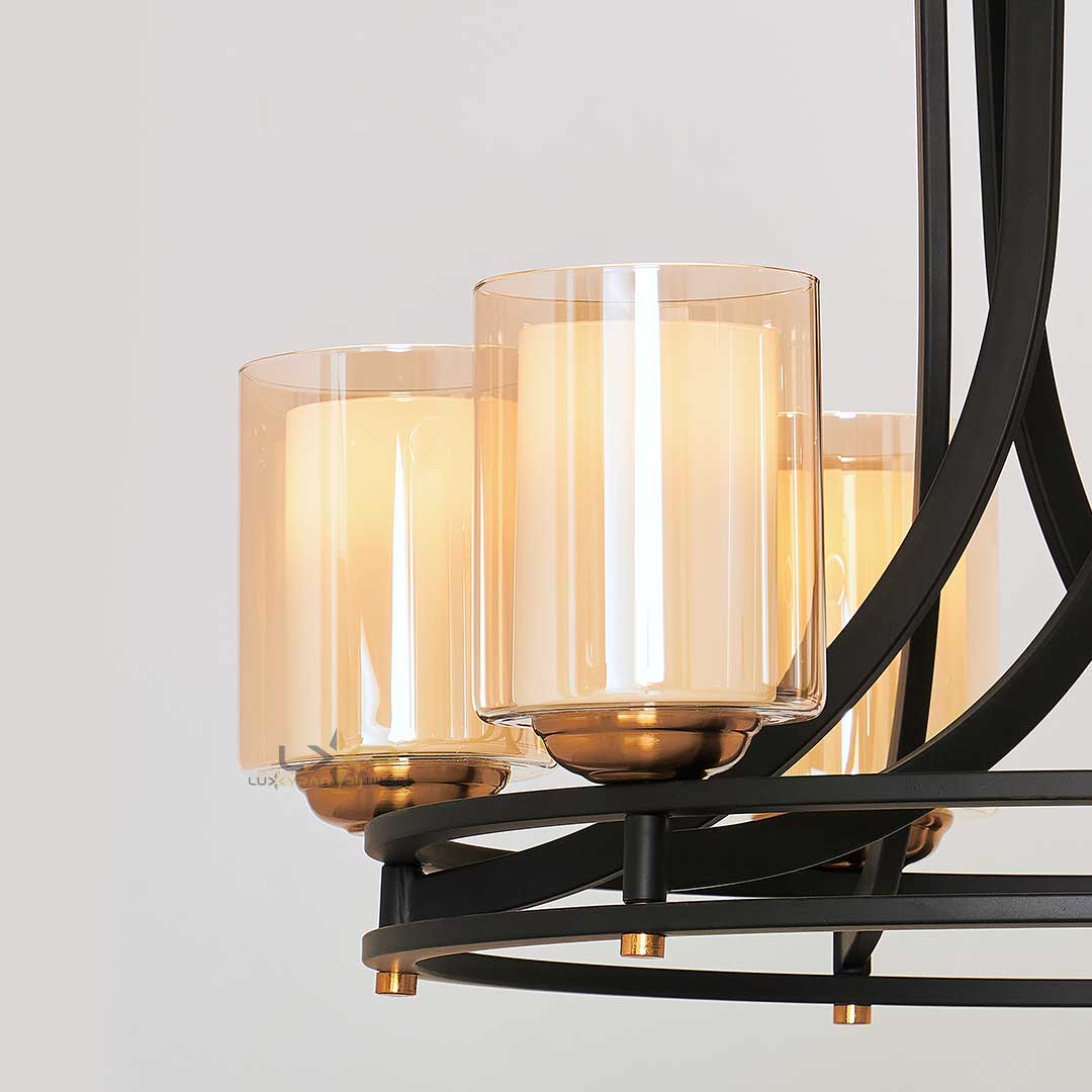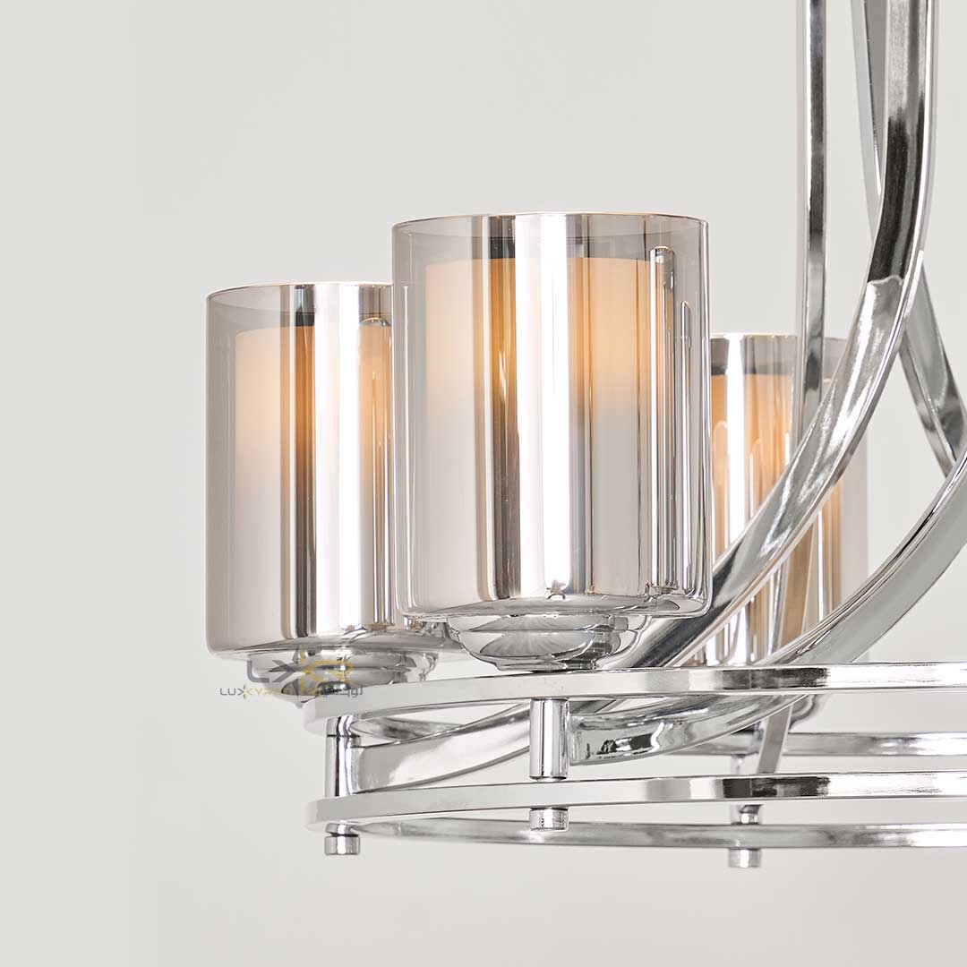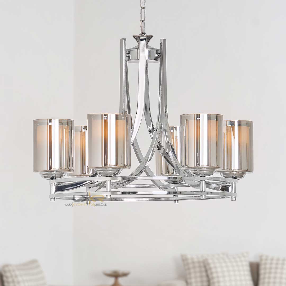 گلس این محصولات بهصورت دولایه است؛ لایه داخلی سفید و لایه بیرونی در رنگهای شامپاینی و دودی ارائه میشود. برای لوسترهای مشکی و طلایی از رنگ شامپاینی استفاده میشود و برای لوسترهای سیلوررنگ دودی در نظر گرفته شده است.
