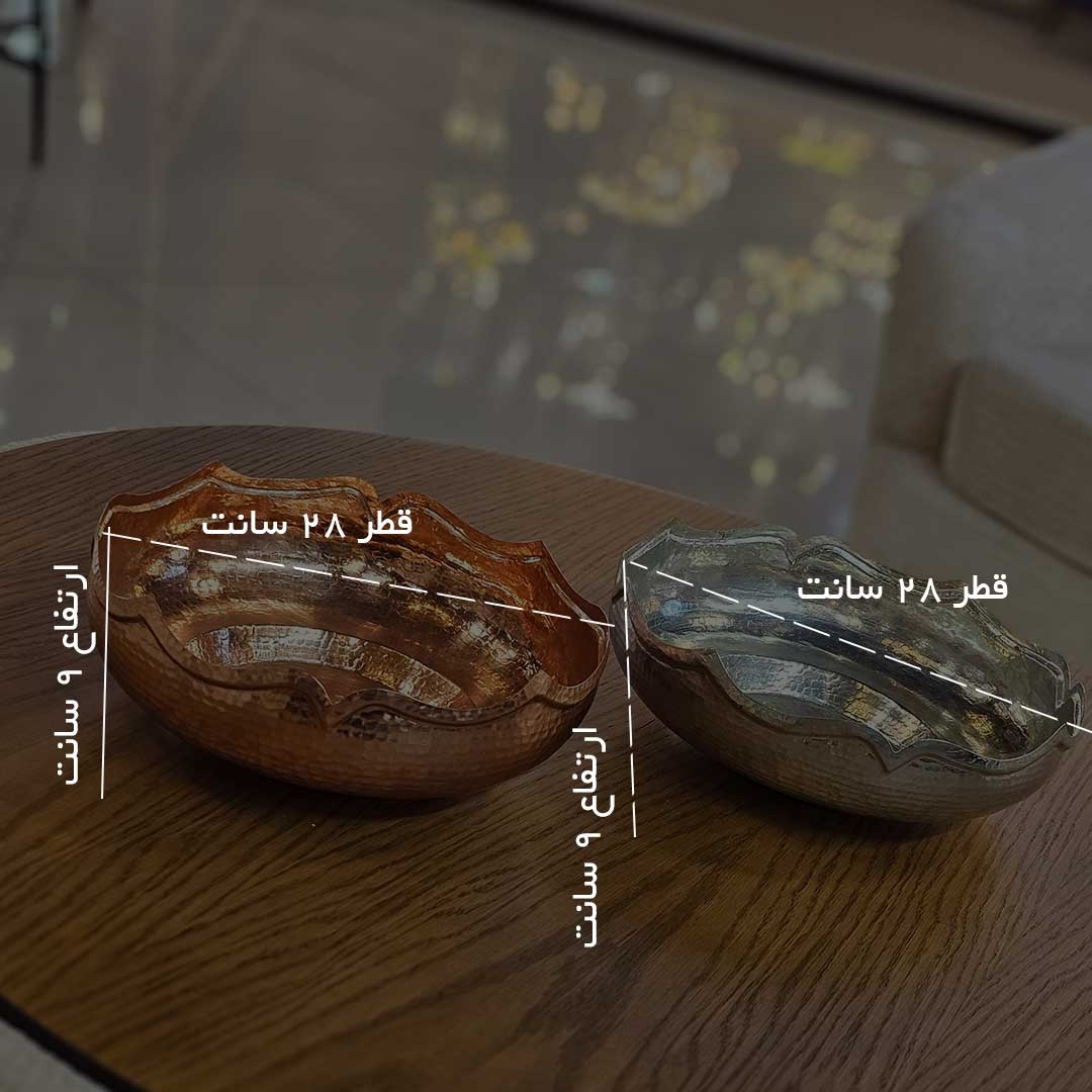 ظروف مسی این مجموعه با پوشش نانو و کیفیتی چشم‌نواز، انتخابی زیبا برای دکور و پذیرایی هستند و با ضمانت اصالت ارائه می‌شوند؛ سایزبندی دقیق هر محصول در تصاویر درج شده ، توجه داشته باشید این ظروف قابل استفاده روی حرارت نیستند!
