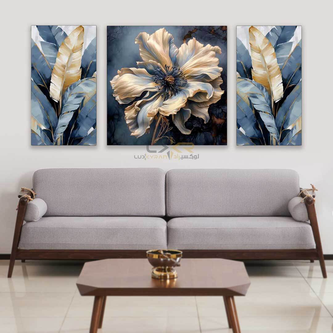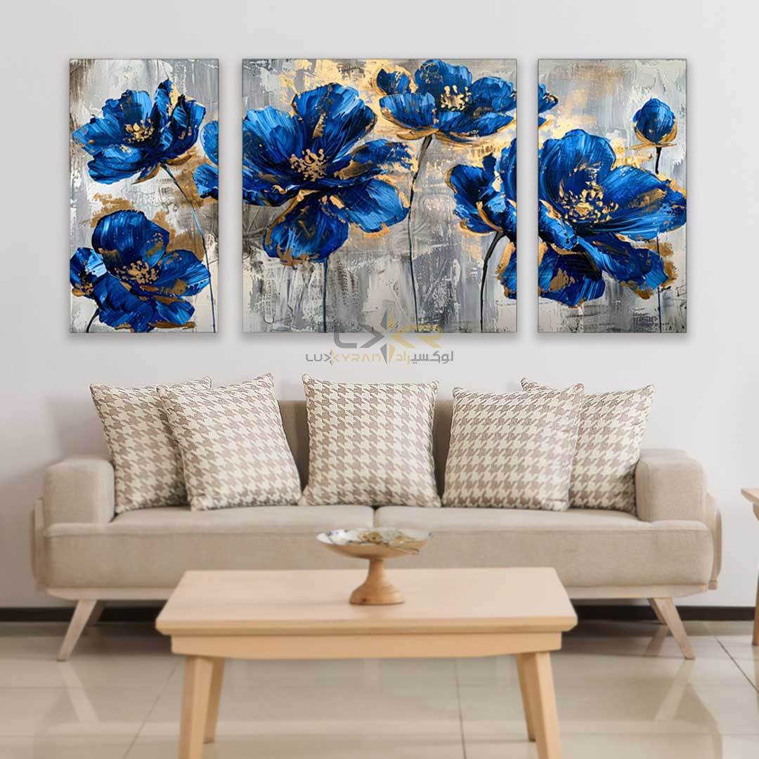 تابلو دکوراتیو سهتکه 90*190 طرح گل آبی